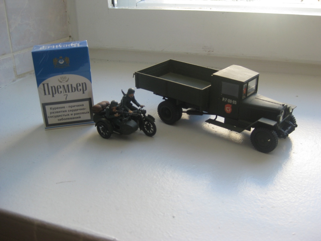 С моей старой моделькой Зис-5В и пачкой сигарет!